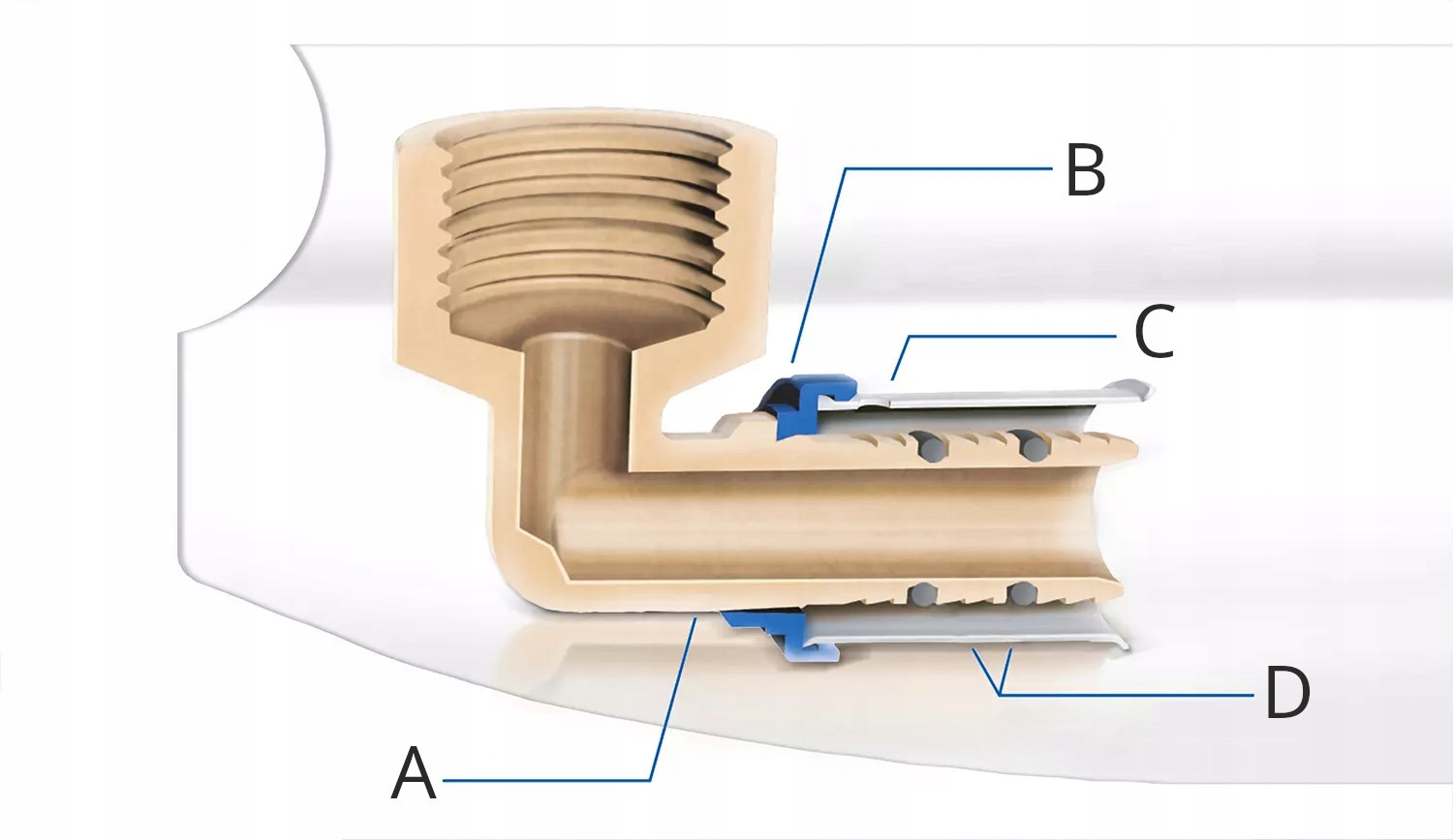 Złączki zaprasowywane wykonane są z wytrzymałego stopu mosiądzu - CW617N. Podwójne zabezpieczenie pierścieniami uszczelniającymi z NBR zapewnia długotrwałą pracę złącza bez utraty szczelności, natomiast tulejka ze stali nierdzewnej gwarantuje trwałe połączenia.