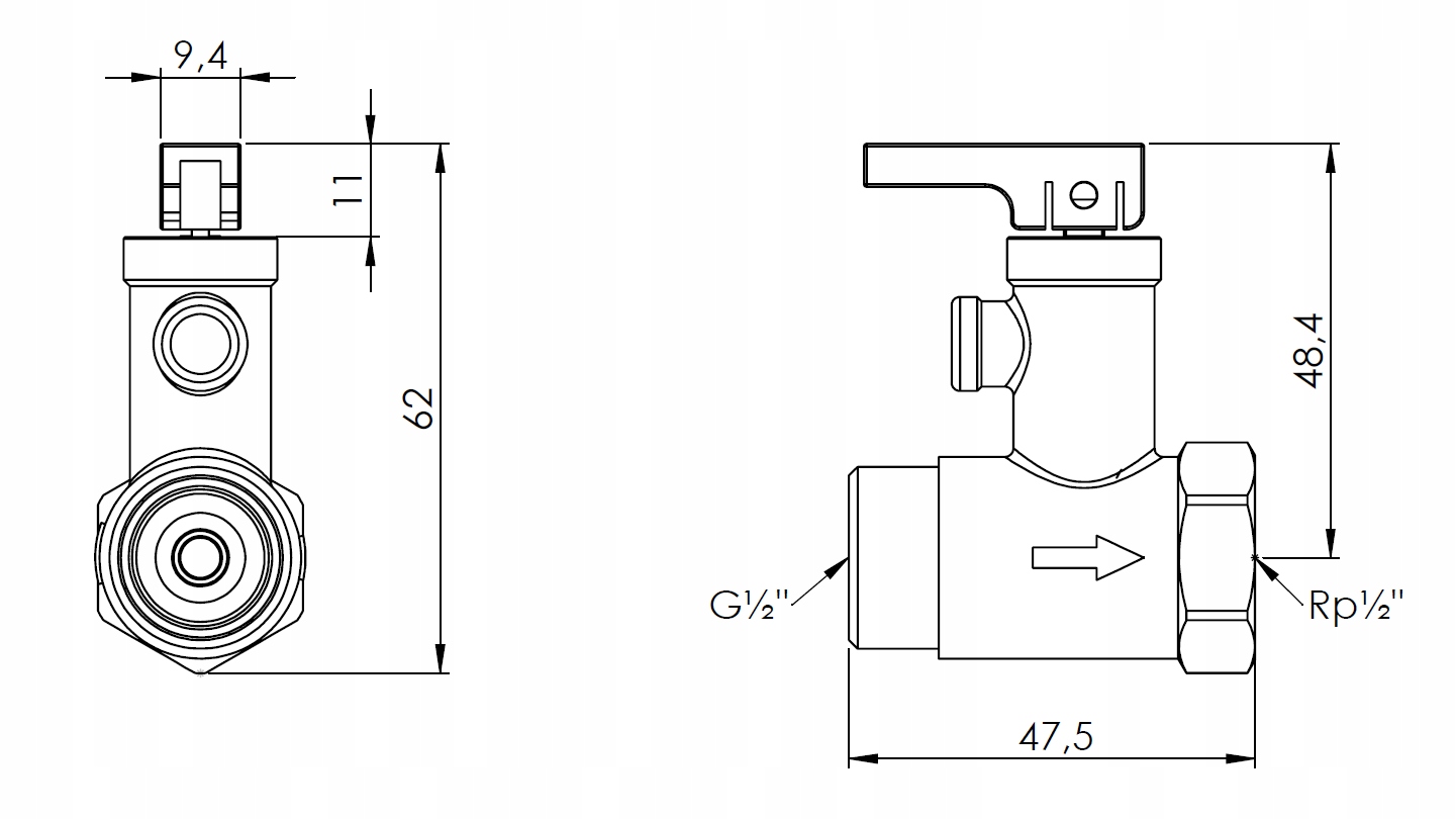 - przyłącza: G½" x Rp½"
