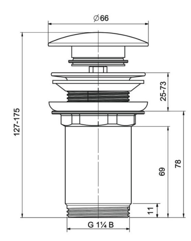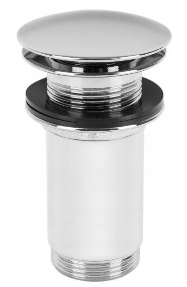 Spust z korkiem automatycznym z mosiądzu, chromowany. Zastępuje standardowe spusty z korkiem gumowym, wyposażone w automatyczny mechanizm click-clack. Przeznaczone są do grawitacyjnych systemów odpływowych w budynkach.