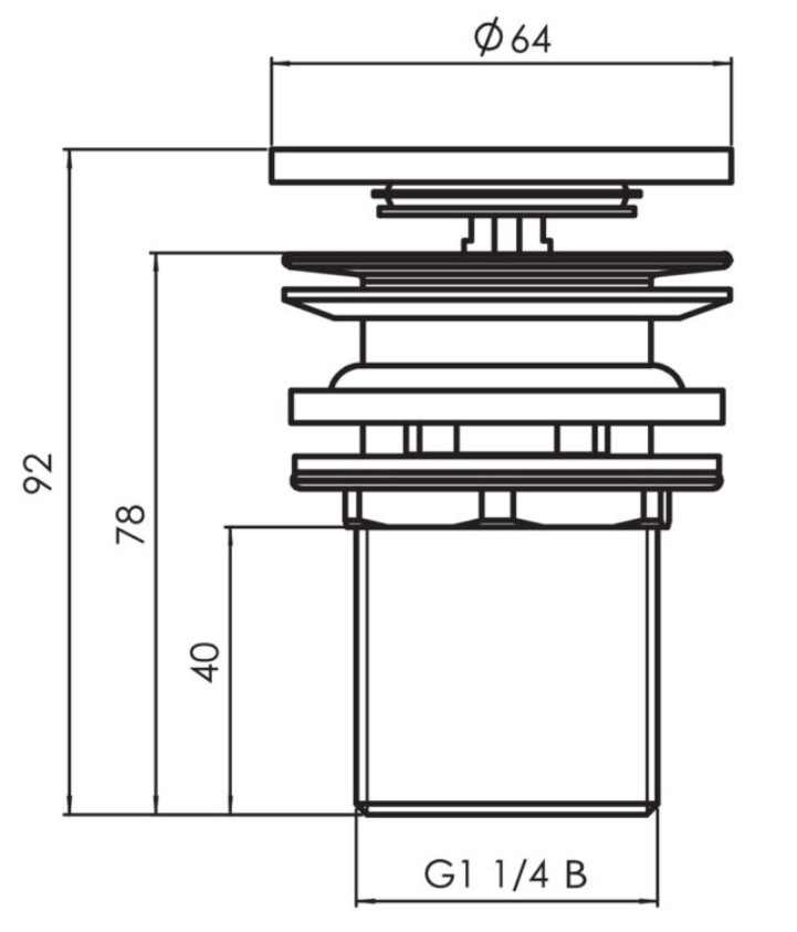Spust z korkiem automatycznym z mosiądzu, chromowany. Zastępuje standardowe spusty z korkiem gumowym, wyposażone w automatyczny mechanizm click-clack. Przeznaczone są do grawitacyjnych systemów odpływowych w budynkach.