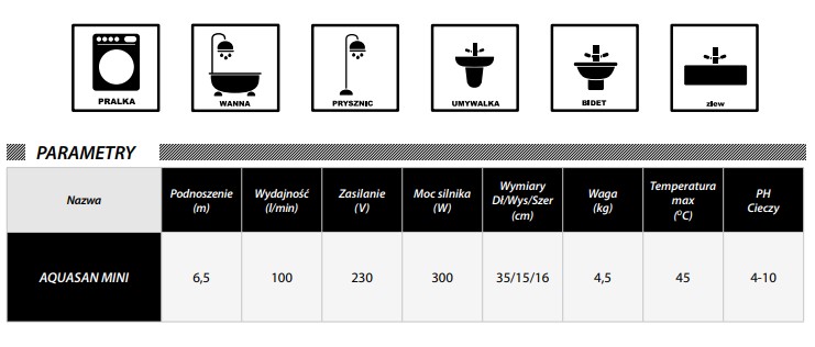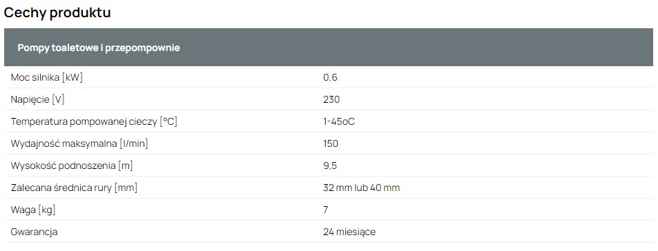 Zastosowanie: Pomieszczenia w gospodarstwie domowym bez technicznej możliwości podłączenia urządzeń sanitarnych do grawitacyjnej kanalizacji sanitarnej - przerabiane dla potrzeb sanitarnych piwnice, strychy i inne pomieszczenia.