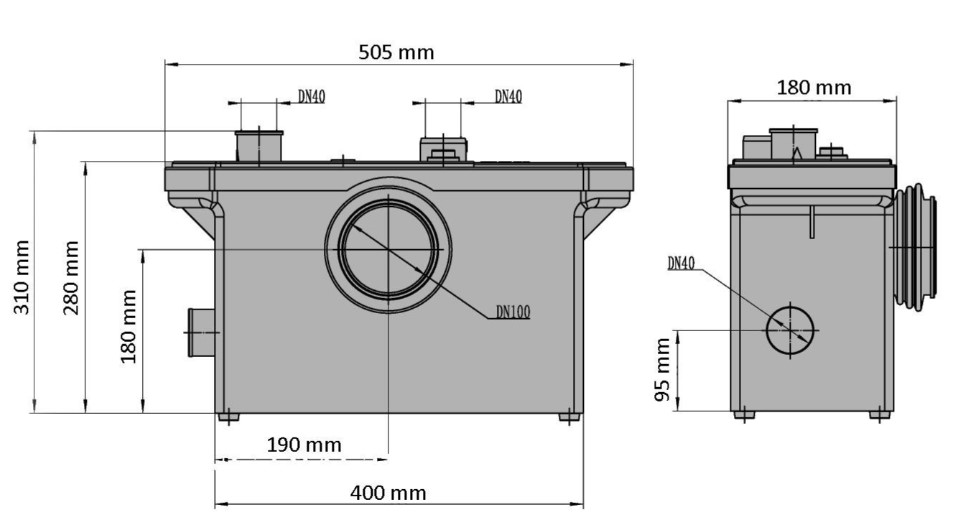 Wysokość podnoszenia do 7 metrów w pionie i 70 metrów w poziomie całkowicie eliminuje konieczność grawitacyjnego odprowadzania nieczystości.