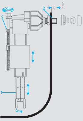 - Bezstopniowa regulacja ilości wody poprzez wyregulowanie systemu osadzenia pływaka