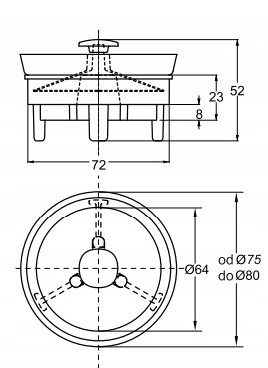 Wersja do syfonów brodzikowych o otworze w śpuście ø 70mm do ø 80 mm