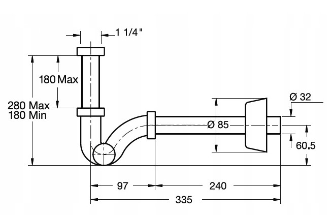 Przyłącze spustu 1 1/4", rura odpływowa ø 32 x 250 mm