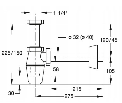 Przyłącze spustu 1 1/4", rura odpływowa ø 32 x 230 mm