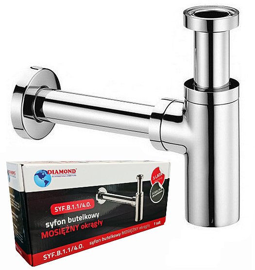 DIAMOND SYFON BUTELKOWY DO UMYWALKI 1 1/4. MOSIĄDZ CHROM OKRĄGŁY, (PÓŁSYFON)