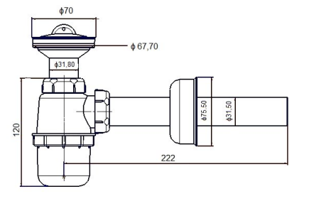- Odejście proste, sitko plastikowe, korek PCV