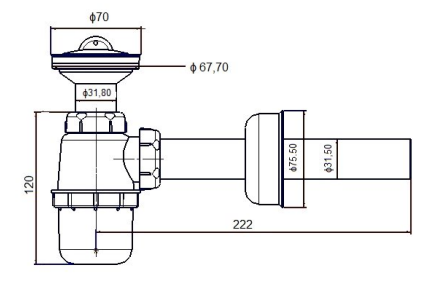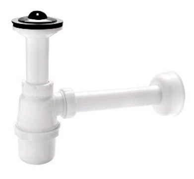 Syfon umywalkowy butelkowy, odejście proste, sitko nierdzewne, korek PVC