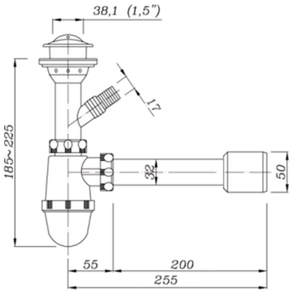 Syfon umywalkowy butelkowy, odejście redukcyjne, sitko plastikowe, podejście do pralki, zmywarki, korek PVC