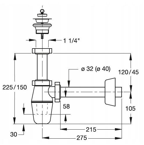 Przyłącze spustu 1 1/4", rura odpływowa ø 32 x 230 mm