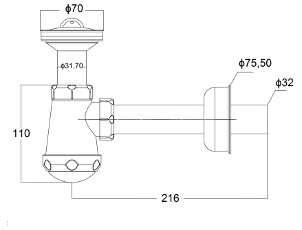 Syfon umywalkowy butelkowy MINI , odejście proste, sitko nierdzewne, korek PCV