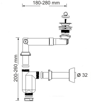 Syfon umywalkowy teleskopowy Loco oszczędzający przestrzeń, sitko stal nierdz. korek PCV