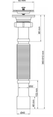 Syfon umywalkowy Universal FI 32/40, sitko nierdzewne, korek PCV