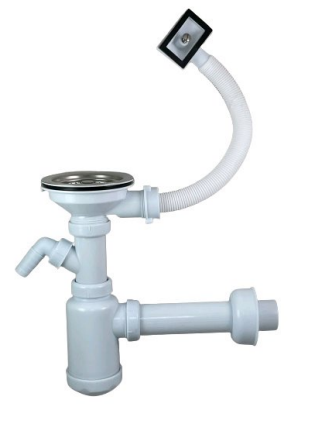 Sitko 3,5", trzpień stalowy, wyciągany korek cedzak, podejście do pralki, zmywarki, przelew wertykalny