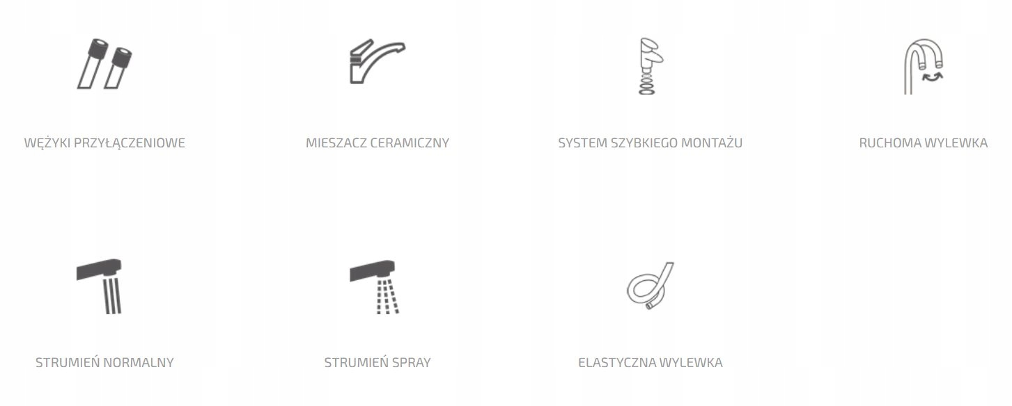 W POGOni za idealną kuchnią! Szara bateria kuchenna z elastyczną wylewką i nakładką na uchwyt w tym samym kolorze stworzy fantastyczne pomieszczenie, z którego ciężko będzie wyjść. Posiada elastyczną wylewkę z pamięcią kształtu, dlatego zawsze możesz dopasować ją do swoich potrzeb. Ten kran ma do wyboru dwa rodzaje strumieni: normalny i spray.