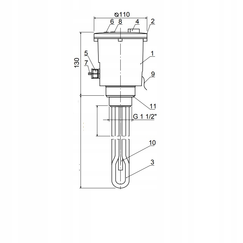 Grzałki na prąd trójfazowy o mocy 6,0 kW wyposażone są fabrycznie w czterożyłowe przewody zasilające o długości ok.1,5 m bez wtyczki.