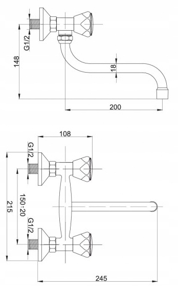 Wysokiej jakości bateria zlewozmywakowa ścienna - Standard B104