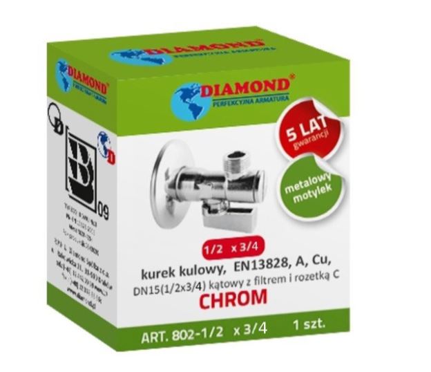 - DIAMOND ZAWÓR KULOWY DN15/DN10(1/2x3/4) KĄTOWY Z FILTREM