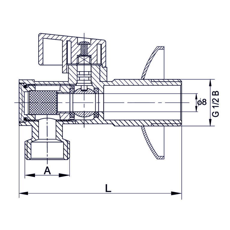 - Wysokiej jakości kurki kulowe kątowe do instalacji wodociągowej w budynkach, wykonane z mosiądzu z uszczelnieniem kuli PTFE, w wersji z metalową rączką.