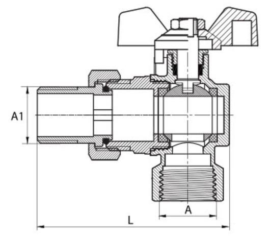 Wysokiej jakości kurki kulowe TYP 3232 „Hiszpan” występuje w wersji kątowej do instalacji wodociągowej i centralnego ogrzewania w budynkach, wykonane z mosiądzu z uszczelnieniem kuli PTFE, wyposażone w dławik w wersji ze śrubunkiem i aluminiowym motylkiem w kolorze niebieskim. Wszystkie kurki są piaskowane i po tej operacji niklowane.