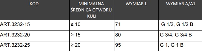 - Materiał uszczelnienia kuli: PTFE