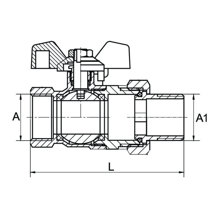 Zawór kulowy 1 1/4" ze śrubunkiem i z motylkiem Hiszpan Diamond
