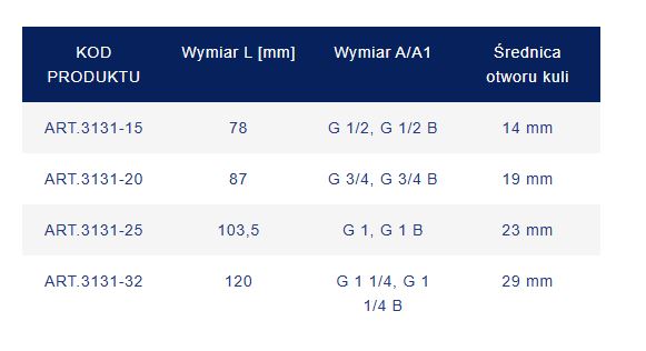- Wymiar A1: G 1 1/4 B