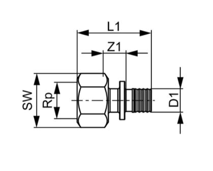 Mufa przejściowa z brązu do łączenia rur TECEflex za pomocą tulei zaciskowej bez dodatkowych pierścieni uszczelniających typu O-ring. (Bez tulei zaciskowej TECEflex).
