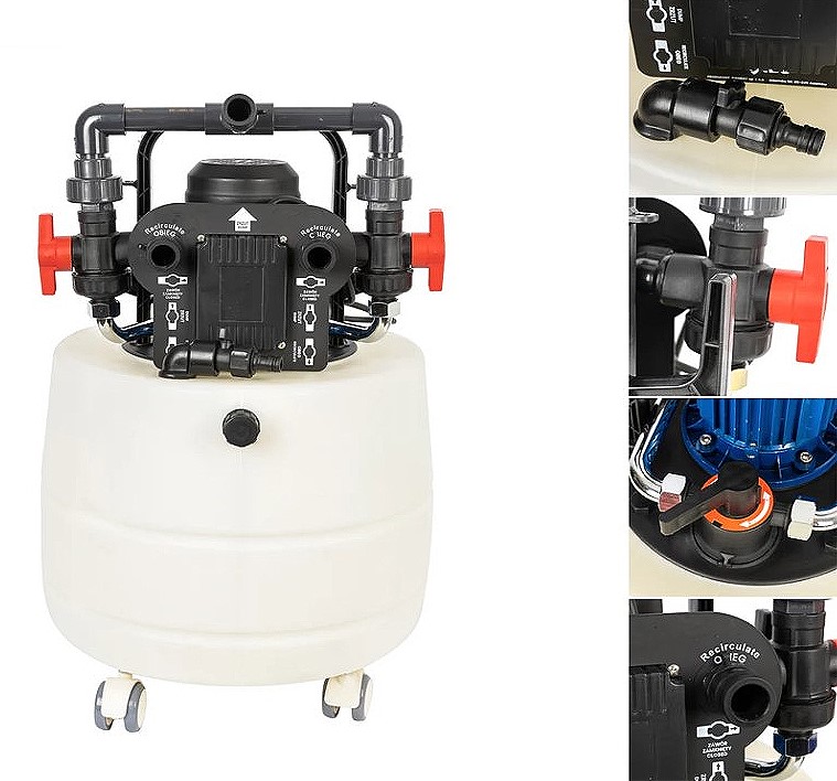 Pompy o osi pionowej ze zbiornikiem i zaworami odcinającymi do odkamieniania i płukania domowych instalacji oraz części instalacji komercyjnych przy zastosowaniu środków chemicznych. Pompy wyposażone są w rewers (zmiana kierunku przepływu) który umożliwia dokładne czyszczenie i płukanie najbardziej zanieczyszczonych instalacji.