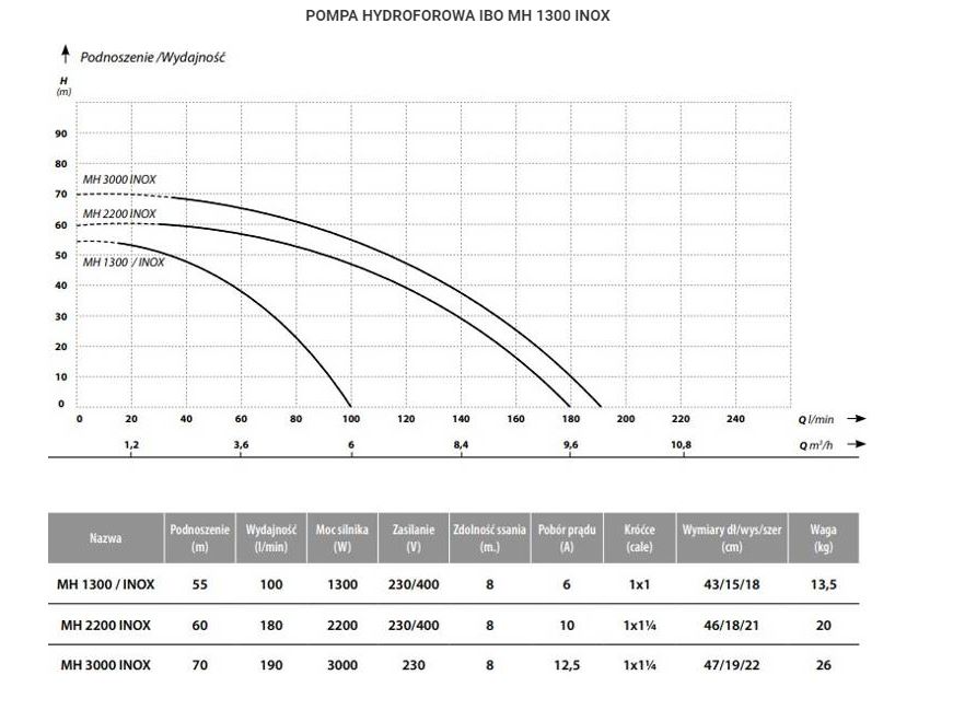 Pompa IBO MH 1300 Inox 230V IBO z osprzętem