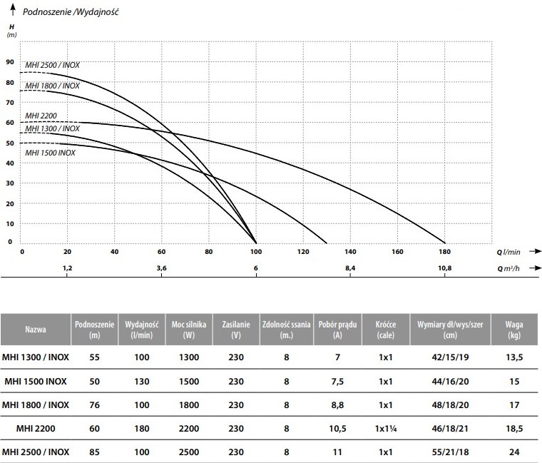 - Obudowa pompy: stal nierdzewna AISI 304