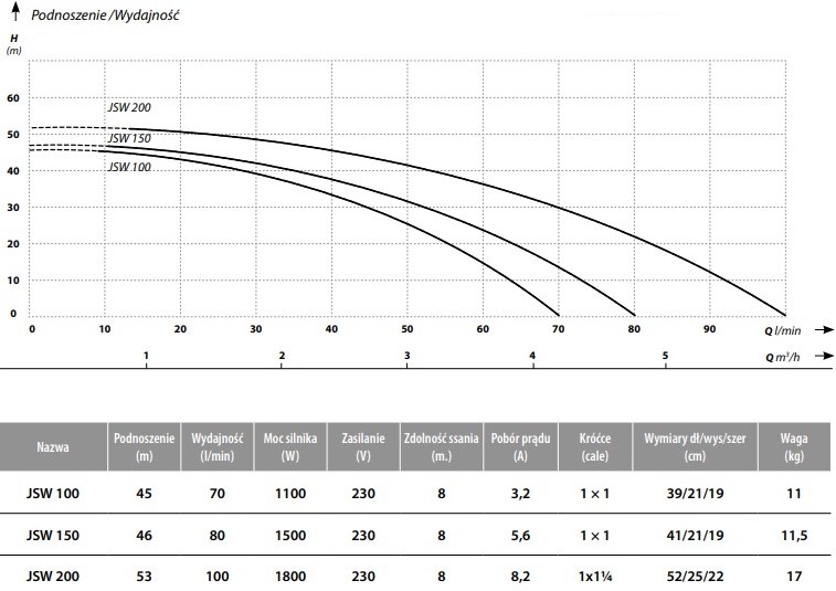 POMPA HYDROFOROWA JSW100 230V 1100W HYDROFOR 70L/h