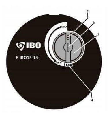 1 - pokrętło ustawiające intensywność przepływu (zielony kolor diody)