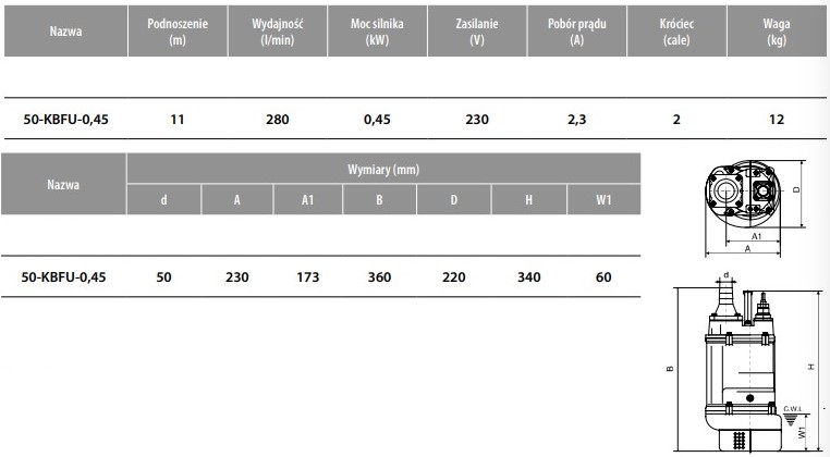 Opinie o POMPA SZLAMOWA 50-KBFU 0,45 IBO ZATAPIALNA WYKOPY