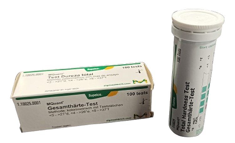 Wskazanie stopnia twardości wody poprzez zmianę barwy paska pomiarowego. Zanurzyć w badanym płynie i porównać kolor ze skalą na opakowaniu. Jako odczyt przyjąć najbliższą kolorystycznie wartość ze skali. 100 szt. w opakowaniu.