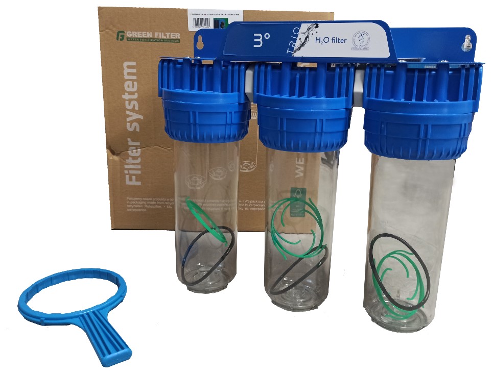 Kompletny 3 stopniowy filtr wstępny do montażu na wejściu instalacji do domu.