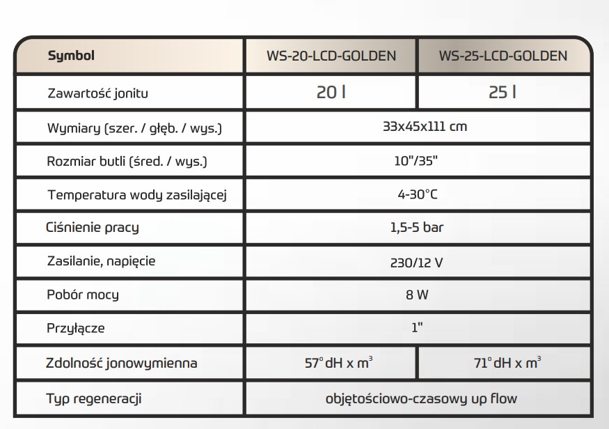 GOLDEN to nowoczesny zmiękczacz wody który cechuję się wysoką oszczędnością dzięki opcji suchego zbiornika zapewniający mniejsze zużycie soli, wspieranym przez nowoczesny system regeneracji UPFLOW
