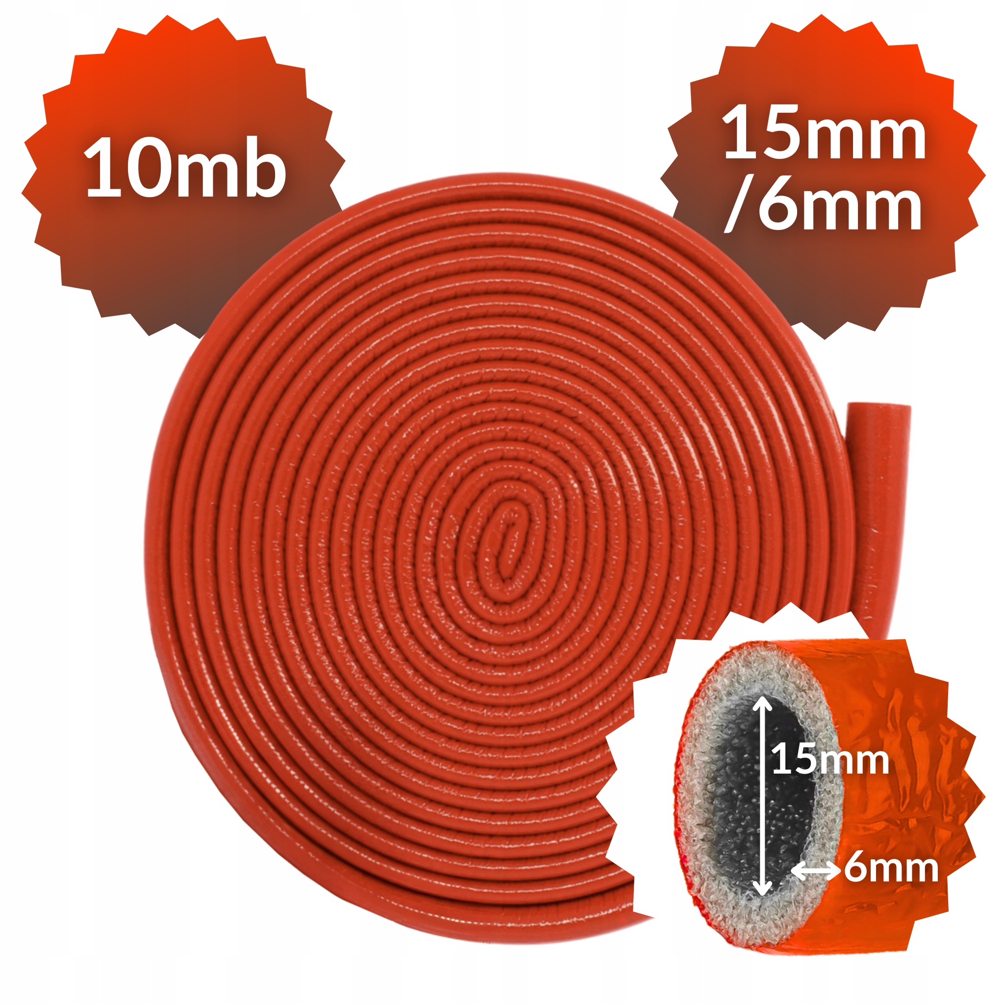IZOLACJA OTULINA NA RURĘ PEX MIEDZIANĄ WĘGLOWĄ FI 15/6mm CZERWONA KRĄG 10m K-Flex