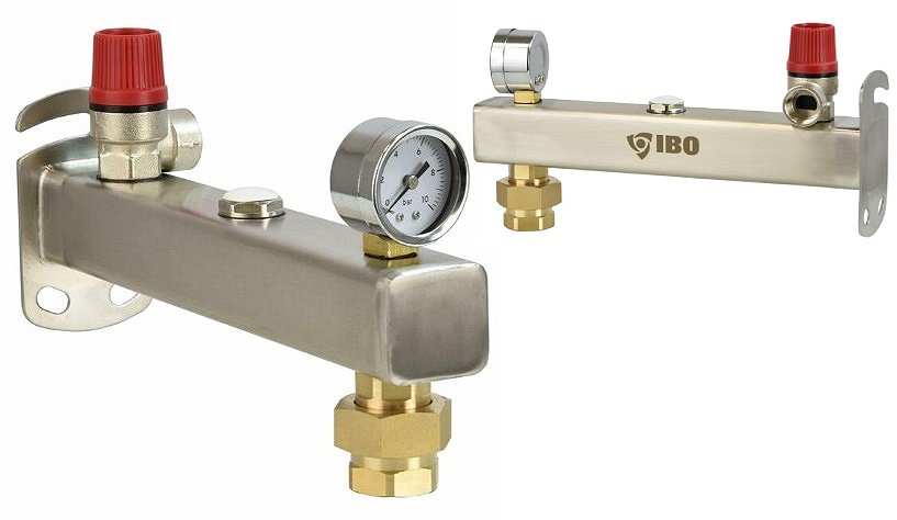 Grupa bezpieczeństwa IBO INOX to urządzenie służące do montażu naczynia przeponowego oraz mające na celu kontrole i zabezpieczenie przed nadmiernym wzrostem ciśnienia w instalacji grzewczej. Grupa bezpieczeństwa jest wyposażona w manometr, zawór bezpieczeństwa oraz zawór serwisowy.