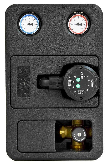 - Grupa pompowa IBO GP PRO 3D-T z obiegiem wyposażonym w zawór trójdrogowy termostatyczny i pompą obiegową Beta 25/60/180