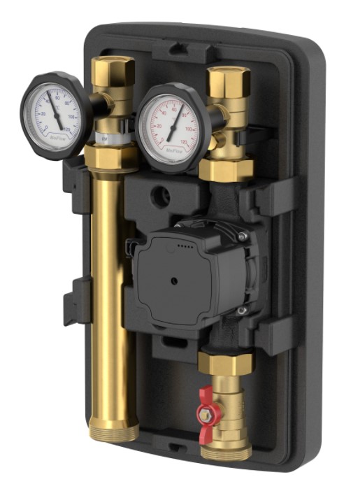 Kompletny zestaw z pompą obiegową lub bez; dwa zawory kulowe (zawór zwrotny na powrocie); czujnik montowany w przewodzie zasilającym; dwa termometry kontaktowe zintegrowane w uchwycie zaworu kulowego (zakres wskazania 0 - 120 °C); jeden zawór kulowy przed pompą; wysokiej jakości izolacja EPP; wraz z uchwytem ściennym; możliwość zamiany strony zasilania i powrotu.