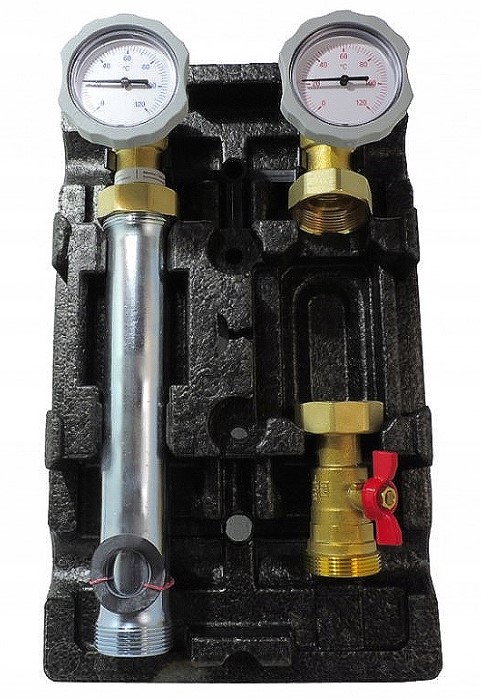 - Komponenty wykonane z: Stal, mosiądz, izolacja EPP