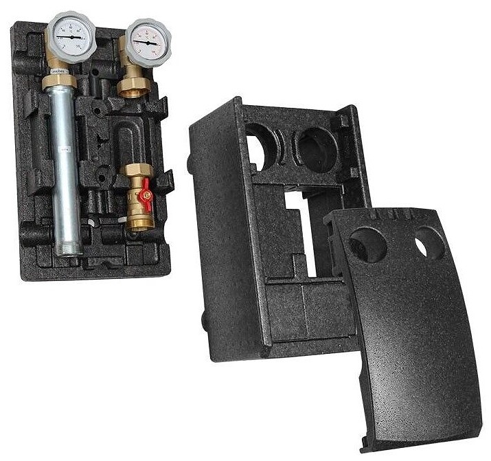 Izolacja- Solidna izolacja termiczna z mechanizmem blokującym ogranicza do minimum stratę ciepła , zapewniając jednoczesne chłodzenie układu elektronicznego pomp. Możliwość późniejszego (de)montażu podczas instalacji przedniej oraz atrakcyjny wygląd różnych grup pompowych w systemie grzewczym.