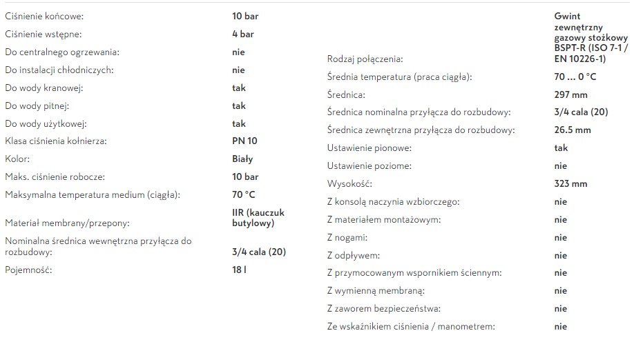 - Do stosowania w instalacjach wody użytkowej i instalacjach hydroforowych.
