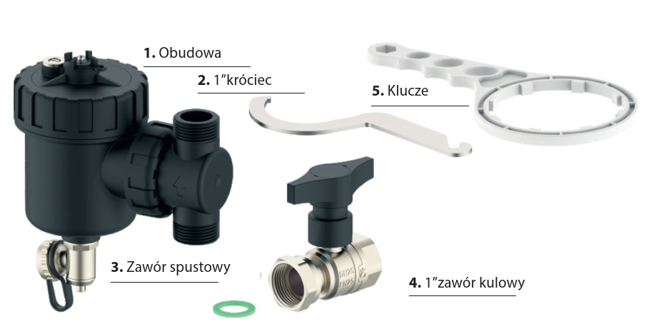 Gdy separator zanieczyszczeń zostanie wypełniony wodą, perełki filtra unoszą się i tworzą film filtracyjny. Zanieczyszczenia zostaną zablokowane przez wąską szczelinę między perłami. Po otwarciu zaworu spustowego zanieczyszczenia opadną wraz z perełkami i zostaną odprowadzone przez przepływ wody. Wewnątrz filtra Perłowego znajduje się wkład magnetyczny.