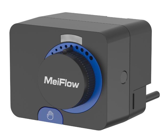 Siłownik wyposażony w kabel, do bezpośredniego podłączenia siłownika z zaworem z 3-drogowym mieszającym typu T (Meiflow(Top) S i M), z awaryjnym trybem ręcznym i widocznym wskaźnikiem położenia.