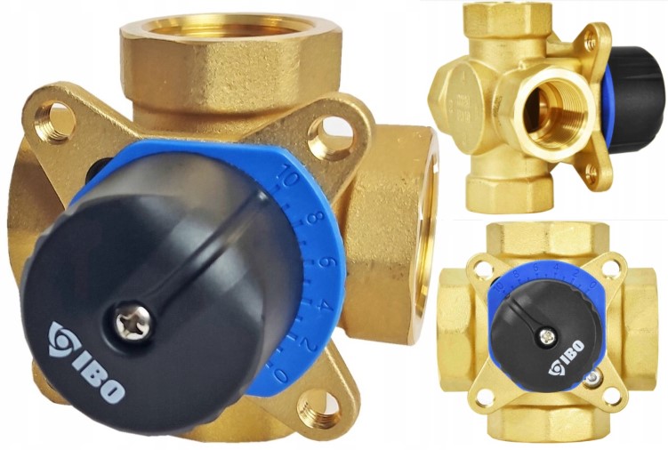 Zawór mieszający czterodrogowy służy do regulacji temperatury wody w instalacji. Dodatkową zaletą jest podwyższenie temperatury powrotu do kotła, co czyni kocioł bardziej odpornym na korozję. Kompaktowe zawory czterodrogowe mieszające można obsługiwać ręcznie za pomocą uchwytu lub elektrycznie za pomocą siłownika.