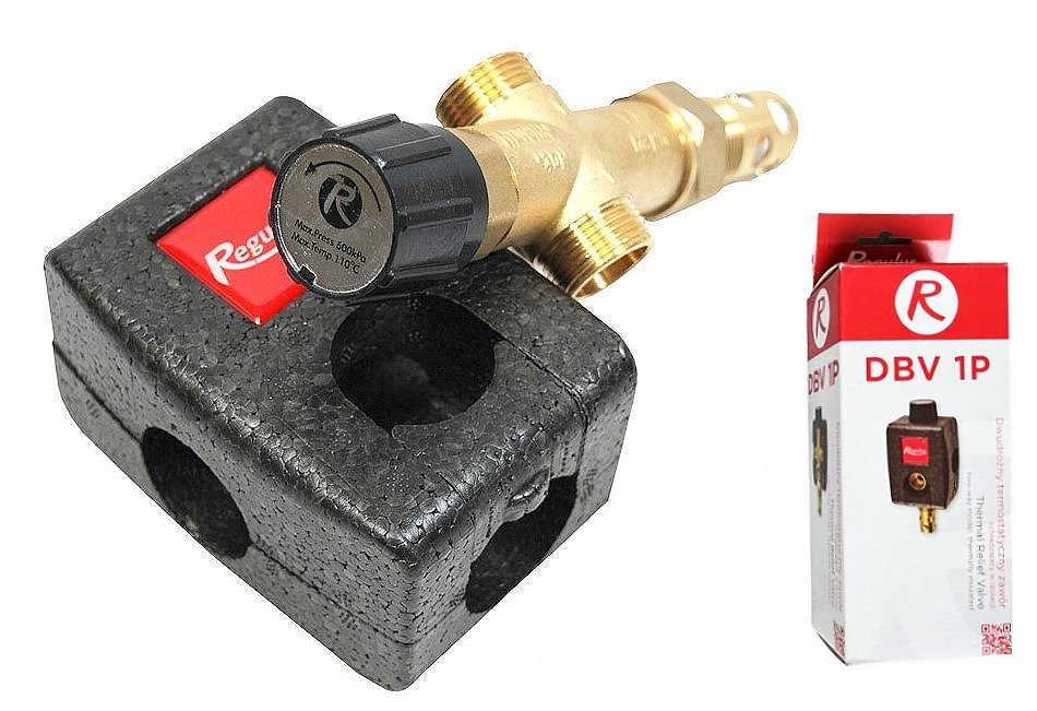 Zawór termostatyczny REGULUS DBV 1P przeznaczony jest do schładzania kotłów na paliwa stałe. Gdy temperatura wody w kotle osiąga 97 °C zawór dopuszcza zimnej wody i równocześnie odprowadza do kanalizacji ciepłą wodę z instalacji grzewczej tym samym schładzając kocioł do bezpiecznego poziomu. Element termostatyczny czujnika zanurzony jest w wodzie grzewczej.