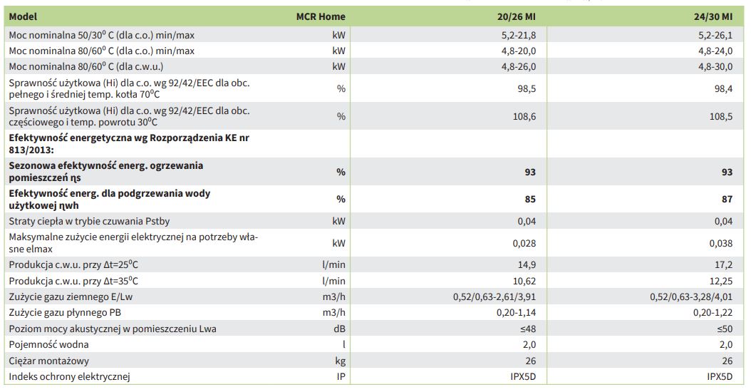 Kocioł gazowy kondensacyjny 2-funkcyjny MCR HOME 20-26 MI